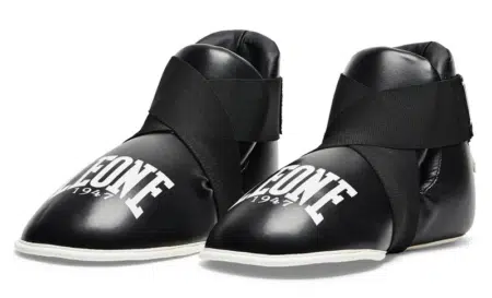 Voetbescherming van het merk Leone. Deze kicks bieden extra bescherming tijdens het kickboxing, waardoor je kinder kans hebt op blessures.