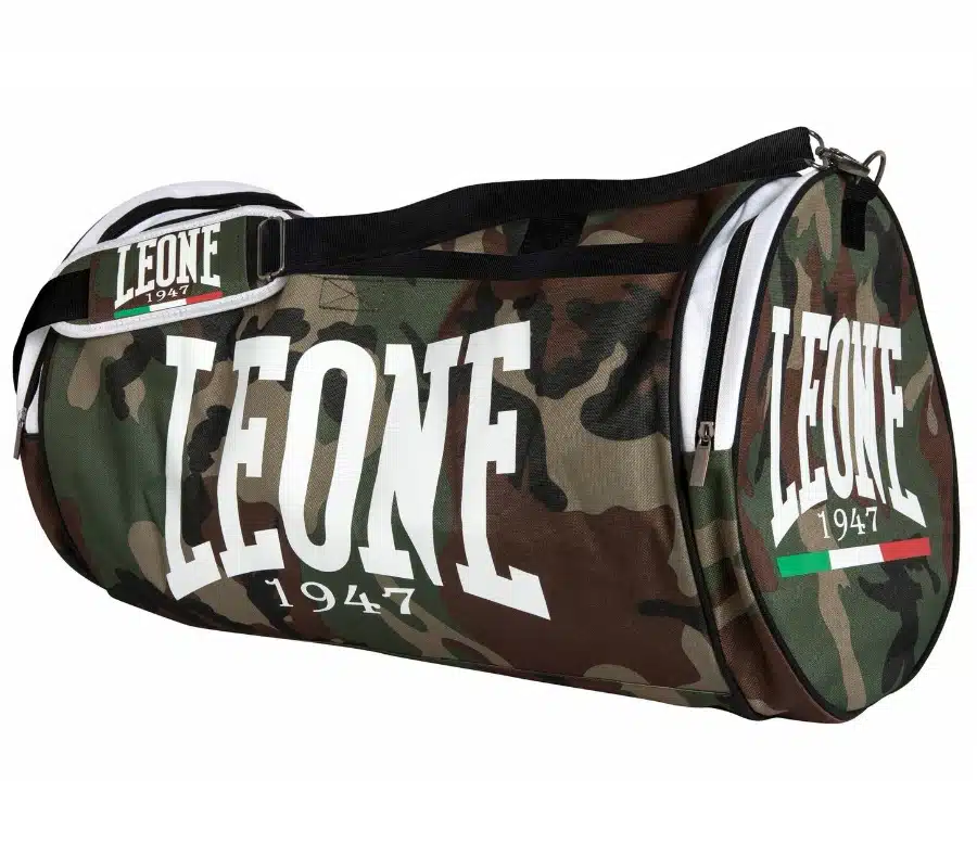 Deze handige sporttas met leger uitstraling, kan gebruikt worden voor het vervoeren van je sportartikelen. De tas is voorzien van verschillende zijvakken, twee handvaten en een schouderhengels. Maak je outfit compleet met de Camouflage bandages en bokshandschoenen van Leone.