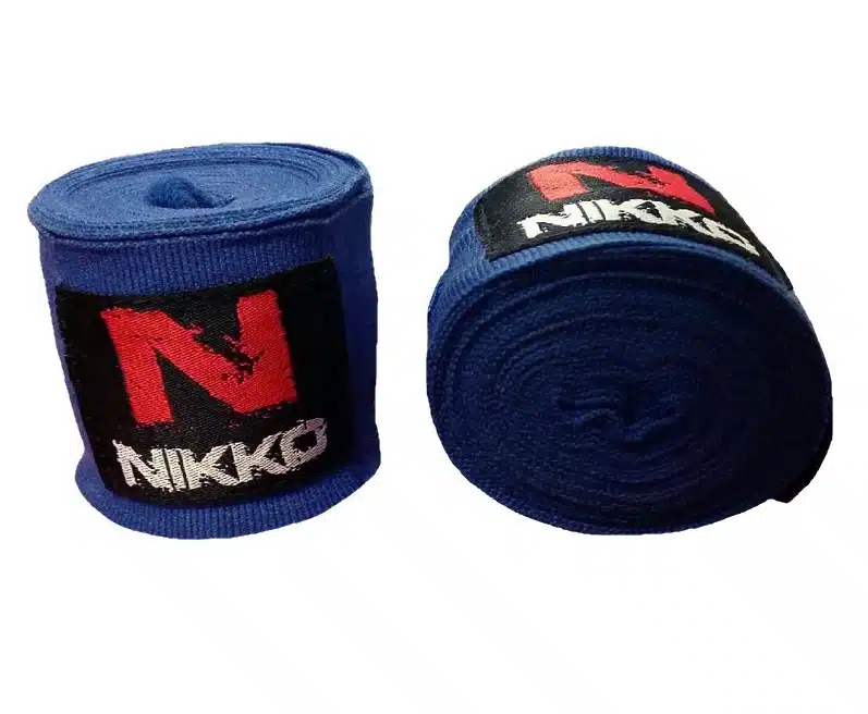 Een boksbandage is een rekbaar stuk stof dat wordt gebruikt door boksers om hun handen te beschermen en te ondersteunen tijdens trainingen en wedstrijden. De bandage is gemaakt van een ademend materiaal en is ontworpen om de handen en polsen stevig te ondersteunen zonder de bewegingsvrijheid te beperken. Het is eveneens vochtabsorberend om transpiratie te absorberen en de handen koel en comfortabel te houden tijdens het boksen. De Nikko bandages zijn eenvoudig te gebruiken en kunnen worden gebruikt door zowel beginnende als de gevorderde (kick)boksers.
