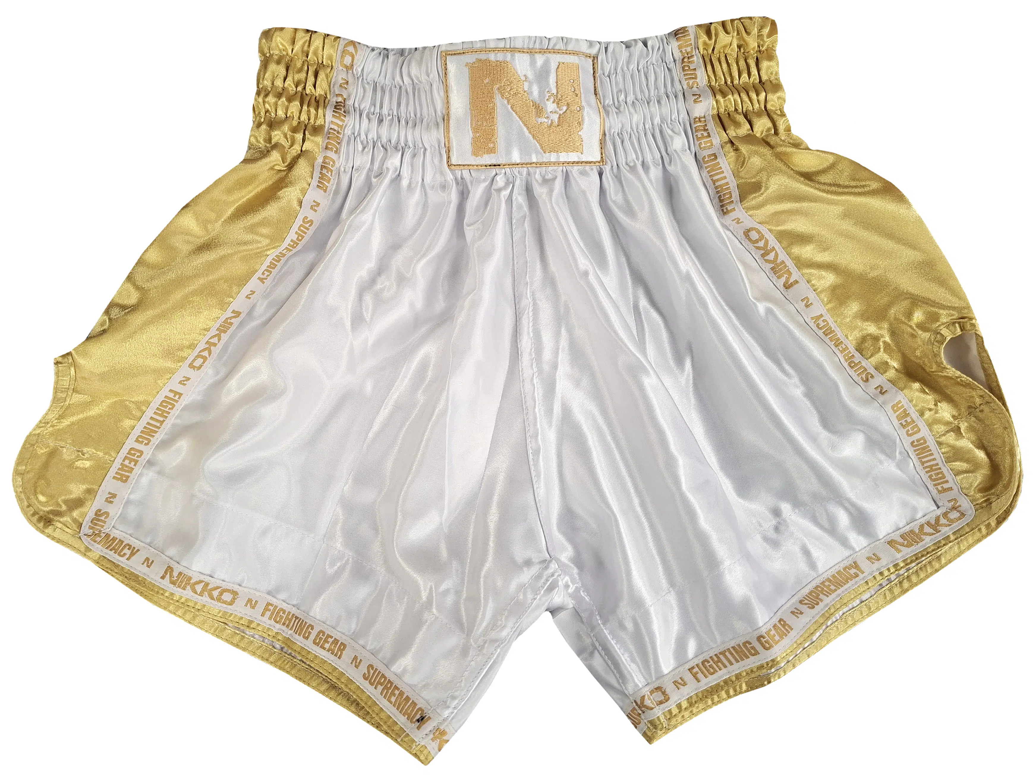 De Nikko Kickboksbroek Elite is ontworpen voor vechters die topprestaties eisen én stijl belangrijk vinden. Dit premium kickboksbroekje combineert een luxe wit-gouden uitstraling met ultiem draagcomfort en bewegingsvrijheid, perfect voor zowel trainingen als wedstrijden.