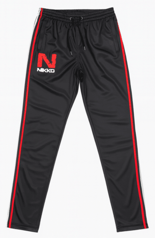 Dit trainingspak van het merk NIKKO is gemaakt van ademend en comfortabel materiaal dat je koel en droog houdt tijdens je workouts. Het pak heeft een klassieke zwarte kleur met rode accenten, wat zorgt voor een stijlvolle en sportieve uitstraling.