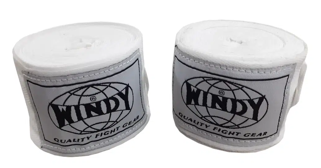 HW2 Comfortabele bandages van het merk Windy. De bandages beschikken over een lichte rek, waardoor de handen tijdens het trainen goed beschermd blijven.